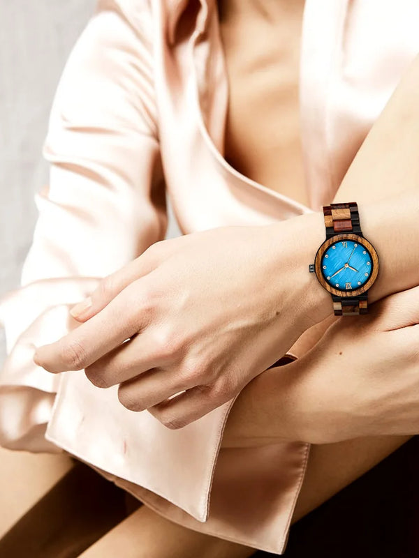 Natural Wood Ladies Wristwatch with Starry Sky Surface Stainless Steel Buckle Japanese Mechanism Festive Gift Watch