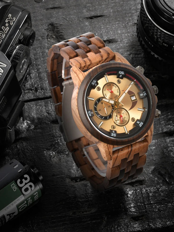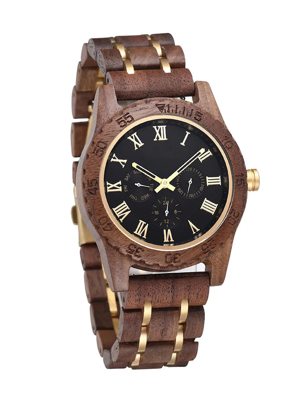 Wooden Wrist Watches For Men Fashion Quartz Wristwatches With Clock Date Week Timepieces Wood Wach Box for Him reloj hombre