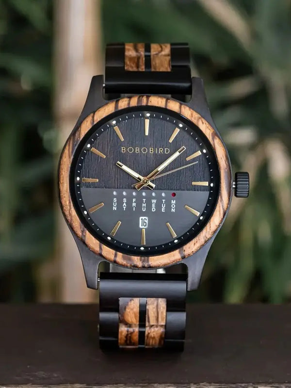 BOBO BIRD Wood Watch Men Quartz Week + Date Timepiece