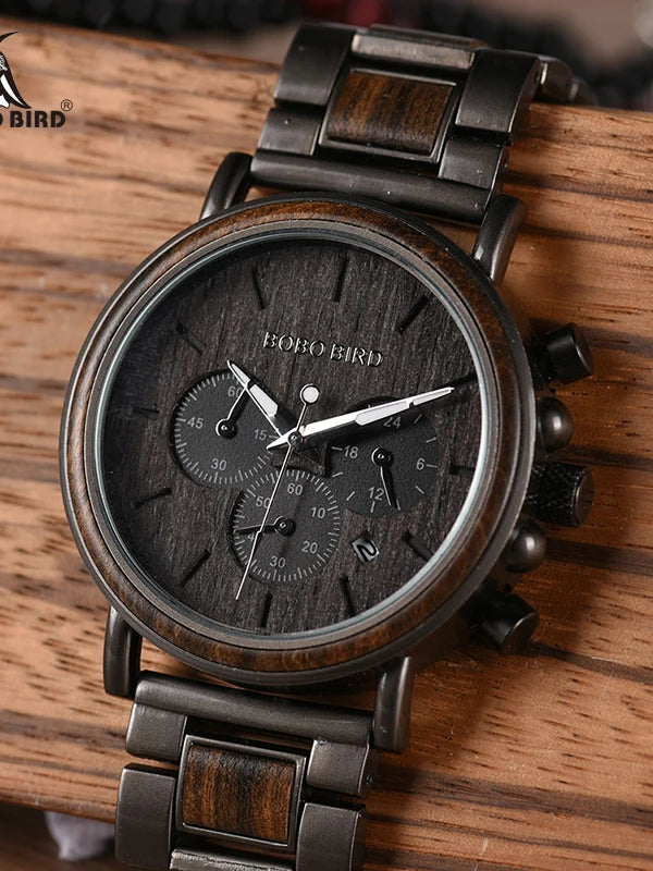 SPECIFICATIONSBand Length: 22Band Material Type: WoodenBattery Included: YesBoxes & Cases Material: WoodBrand Name: BOBO BIRDCase Material: WoodenCase Shape: RoundCase Thickness: 12.8Clasp Type: Bracelet ClaspDesign: Watches men original; Watch for men...