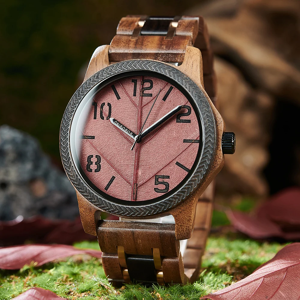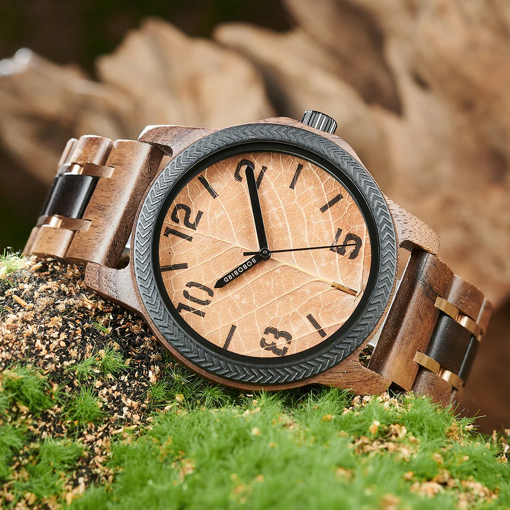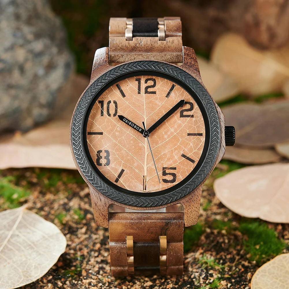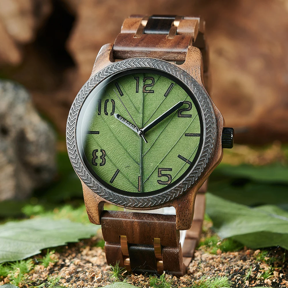Men's Wood Watch , Genuine Leaf Watch, BOBO BIRD Watch for Men, Handmade Watches, Wooden Gift for Anniversary