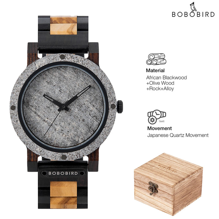 BOBO BIRD Stone Watch for Men Relogio Masculino 2022 New Men’s Wooden Band Wristwatches Personalized Christmas Gift