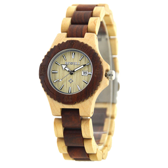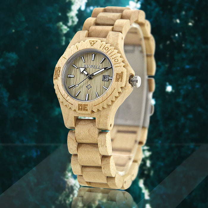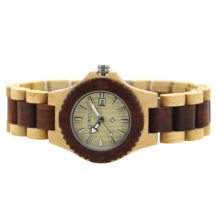 Crafted with a unique wooden bracelet, this watch offers a natural and eco-friendly touch to your style.