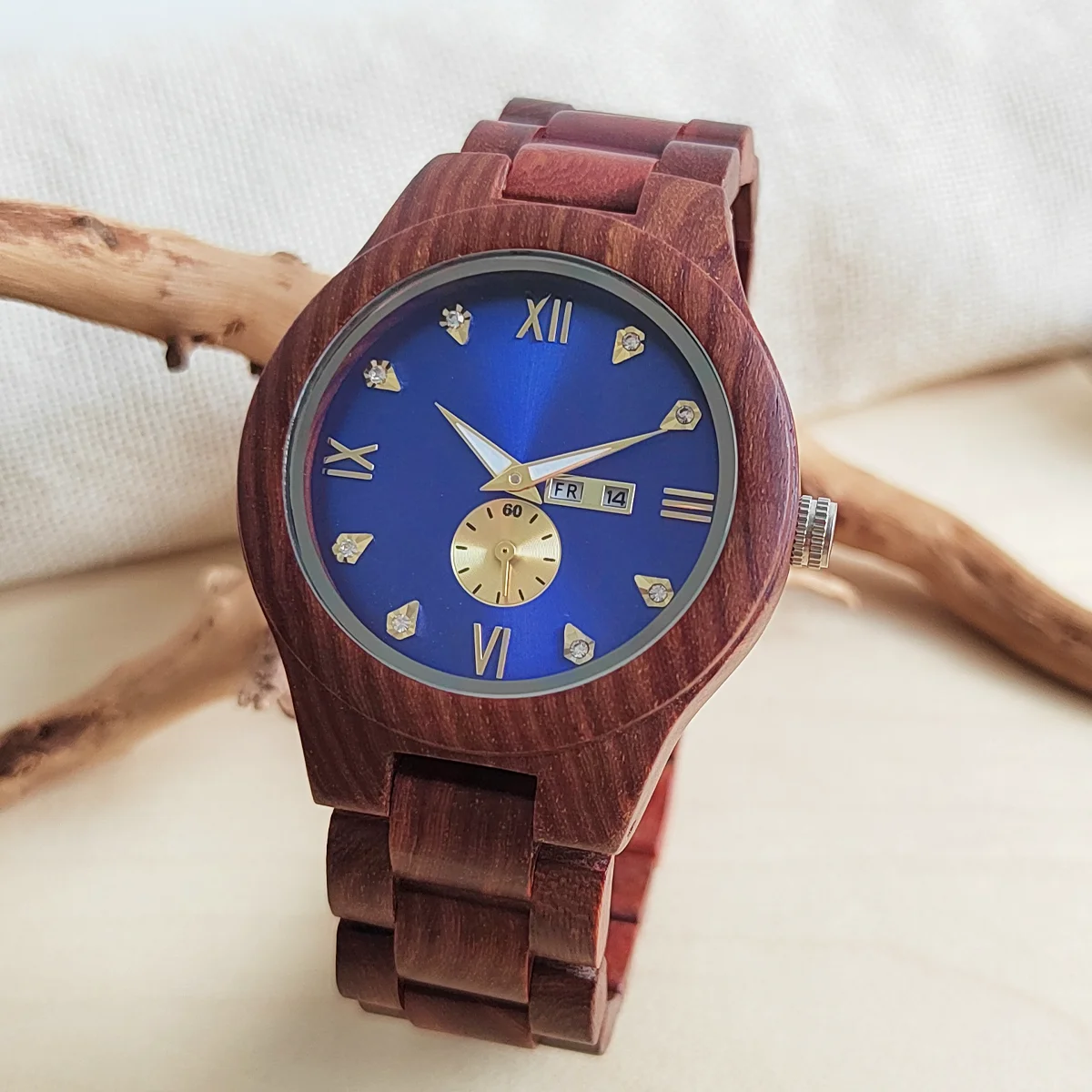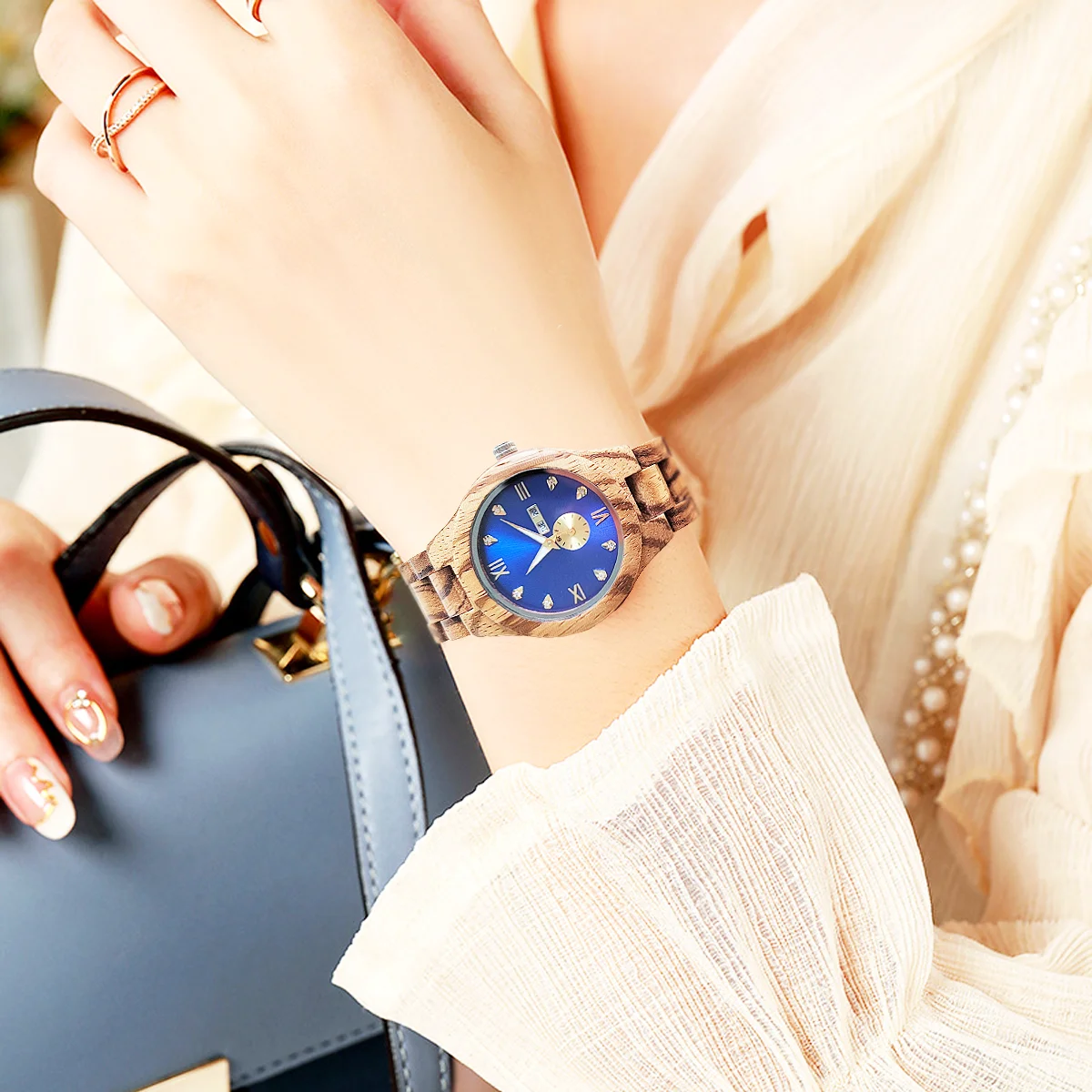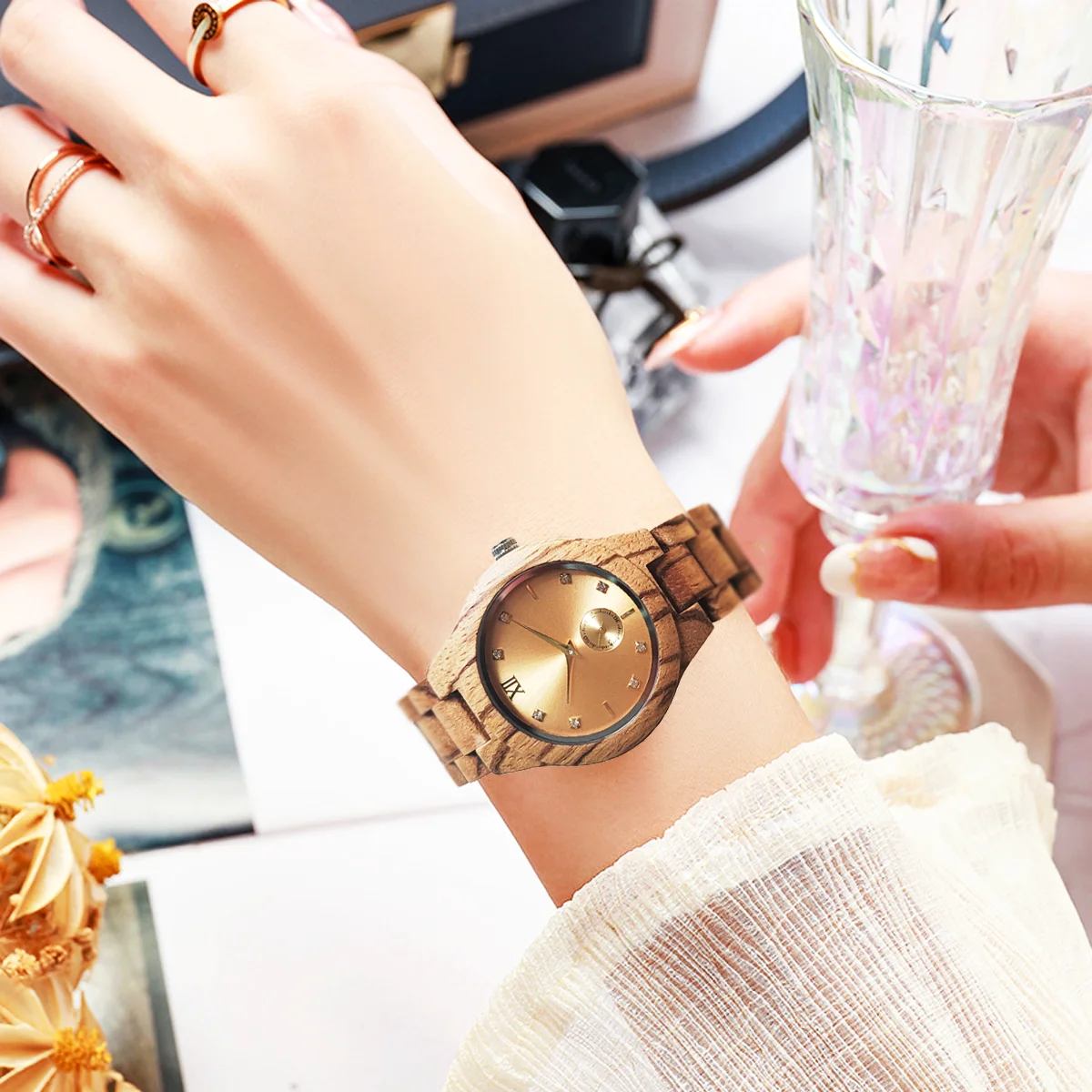 Treat yourself or spoil a special woman in your life with this stunning wooden watch that is not only a fashion statement but also a practical timepiece. With its combination of natural materials, luxurious details, and functional features, this watch is the perfect accessory for the modern woman who appreciates beauty and functionality. Upgrade your accessory game today with our women's wooden watch and make a lasting impression wherever you go.