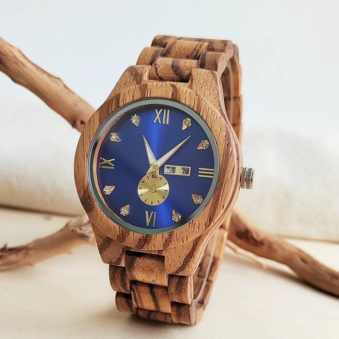 Elevate your style with our exquisite women's wooden watch, crafted from the finest zebrawood and rosewood for a luxurious and unique look. Choose between the sleek zebrawood design or the rich rosewood style to match your personal taste and add a touch of natural beauty to your wrist.